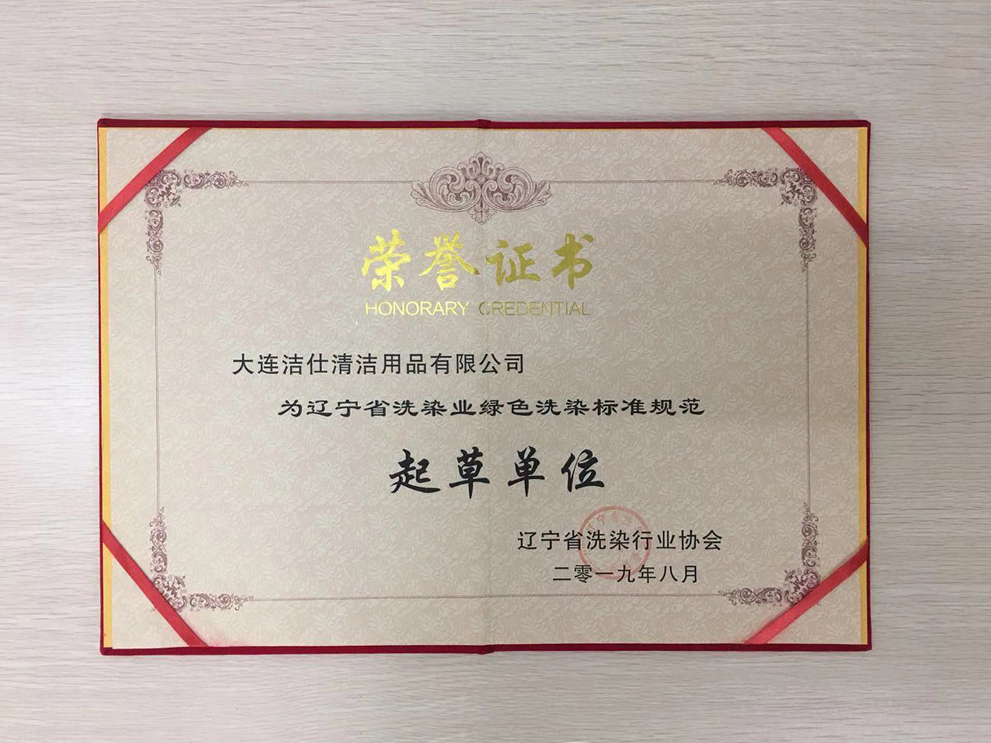 潔仕榮獲“遼寧省洗染業(yè)綠色洗染標(biāo)準規(guī)范起草